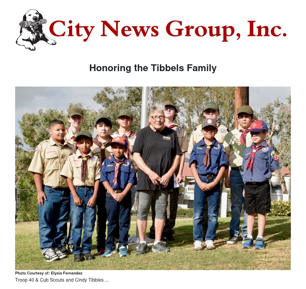The outpouring of support allowed this small-town vibe to shine through. The project was the vision of people like Ron & Daryl Bowler , father and son, Christy McGuire at Get Loaded Guns & Ammo a proud scout sponsor and Grand Terrace Business , The scouts , Shad Boal, and the homeowner Cindy and her daughter Lisa Tibbels. The Tibbels family extends a heartfelt "thank you" to everyone.
