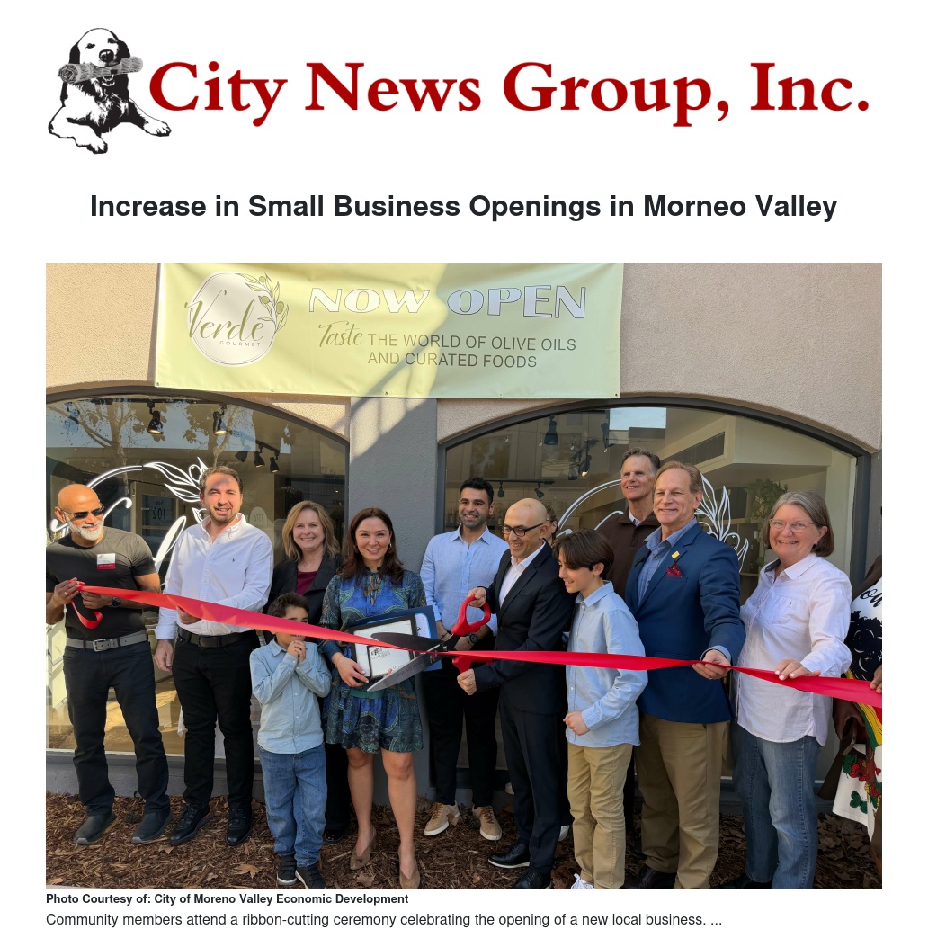 Increase in Small Business Openings in Morneo Valley by William Cortez - City News Group, Inc.