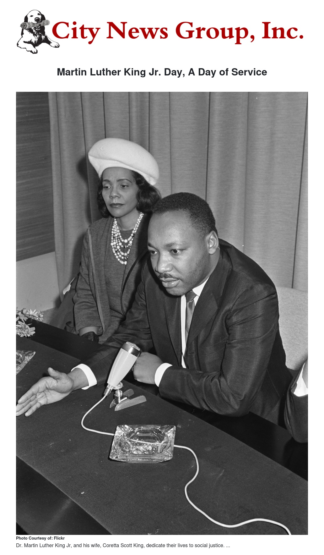 Martin Luther King Jr. Day, A Day of Service by Claudia Cecilia - City News Group, Inc.