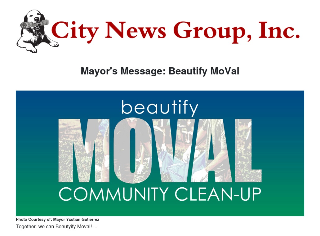 On Saturday, May 8th, from 8am – 12pm, we can Beautify MoVal together. This upcoming Community Day of Service is a perfect way for families and neighbors to safely get together and get outside. I’ll be joined by residents, members of the City Council and City-employee volunteers, to roll up our sleeves with other volunteers in service to our great city.