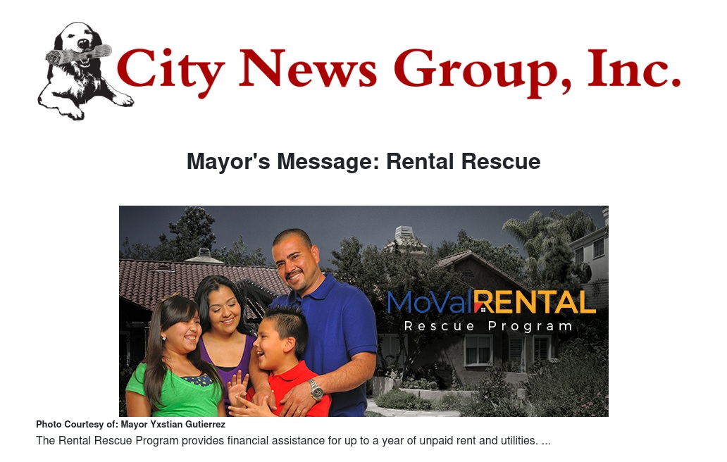 Mayor's Message: Rental Rescue by Mayor Yxstian Gutierrez - City News Group, Inc.