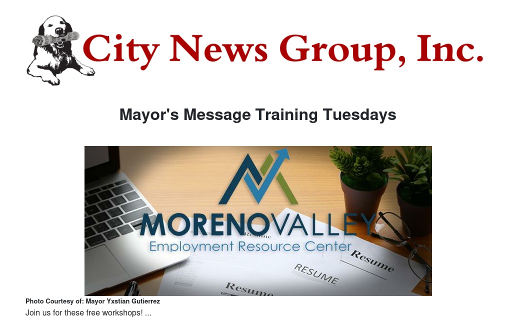 As Mayor, I am a believer in the saying that the best social program in the world is a good job. So I’m pleased to announce that the City of Moreno Valley Economic Development Department has launched a new series of free workshops designed to help job seekers become more desirable potential employees.