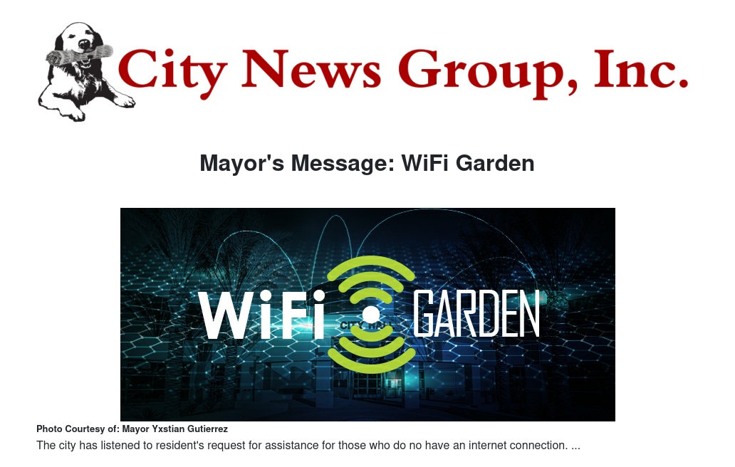 As Mayor, I asked if there was anything the City could do to narrow that digital divide, and that’s what led to the creation of what we call WiFi Gardens – areas at City facilities where residents can access the internet for free, no password needed.