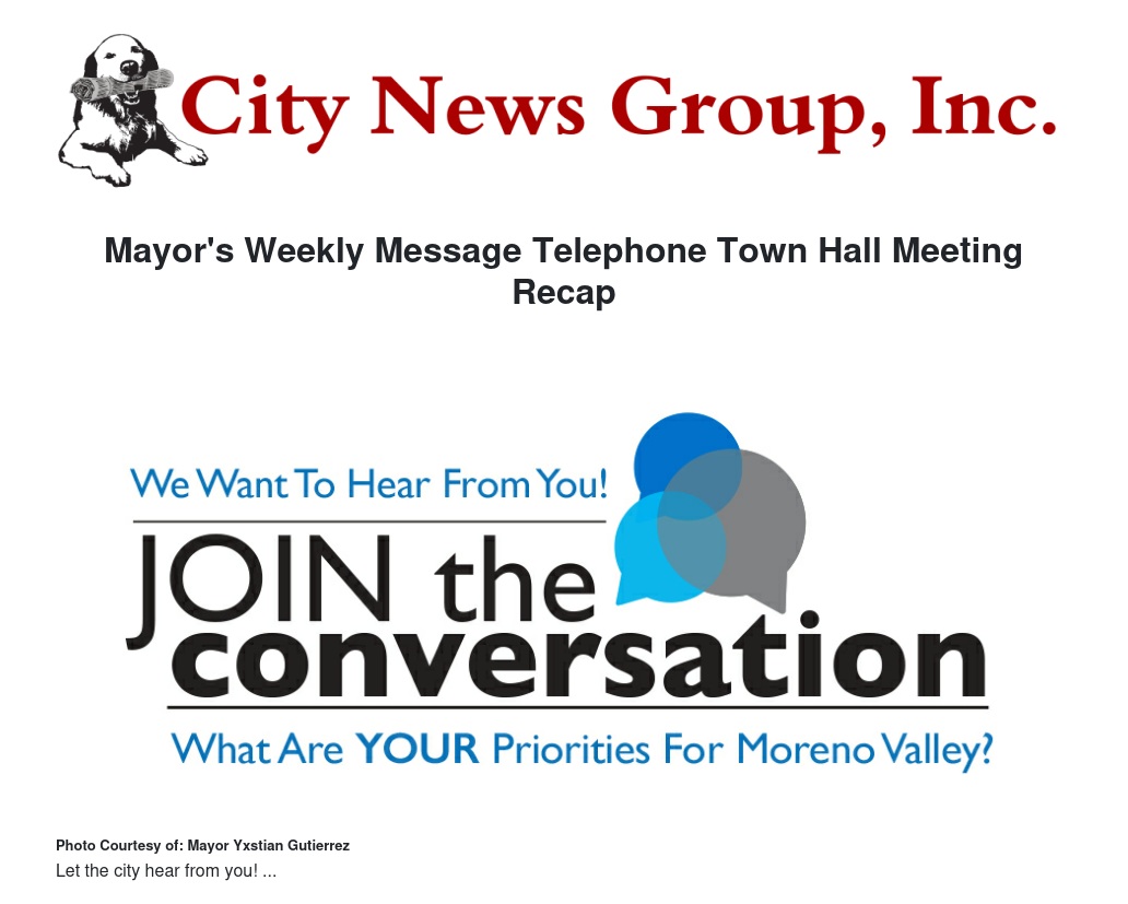 As your Mayor, I’m always looking for opportunities to meet with people to learn more about their city service priorities. Last week, we used one of our best outreach tools, the Telephone Town Hall Meeting, to connect with thousands of MoVal residents. Over the course of an hour, residents asked a wide range of questions regarding everything from the city’s financial health, to protecting wild burros, to plans for the third library branch and the city’s new amphitheater.