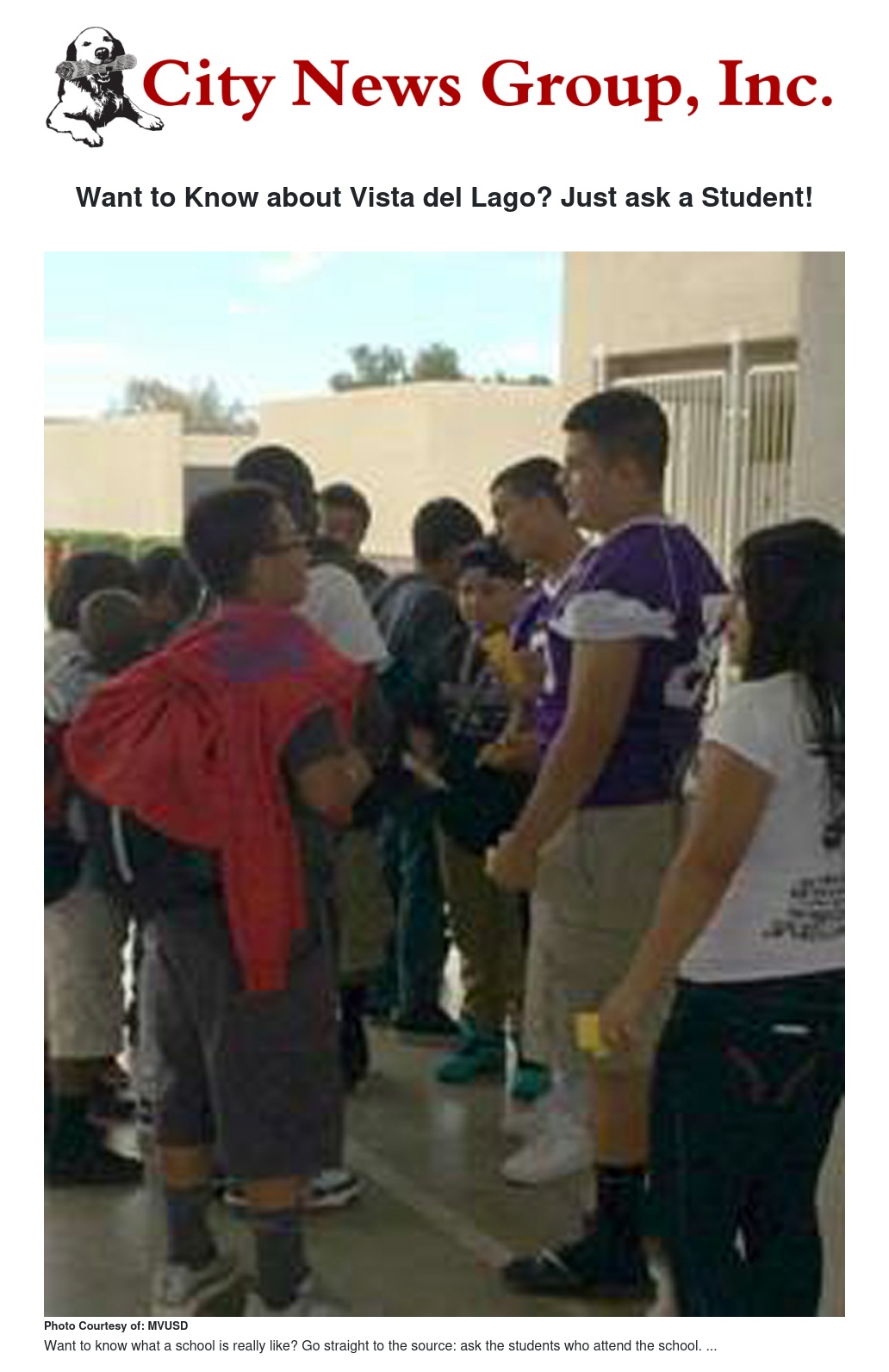 If you really want to know about how great Vista del Lago High School is, then just ask a student.