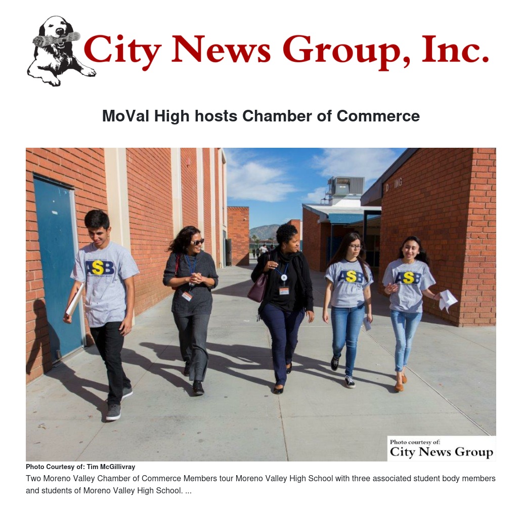 MORENO VALLEY>> Members of the Moreno Valley Chamber of Commerce recently made a stop at the Moreno Valley High School.
