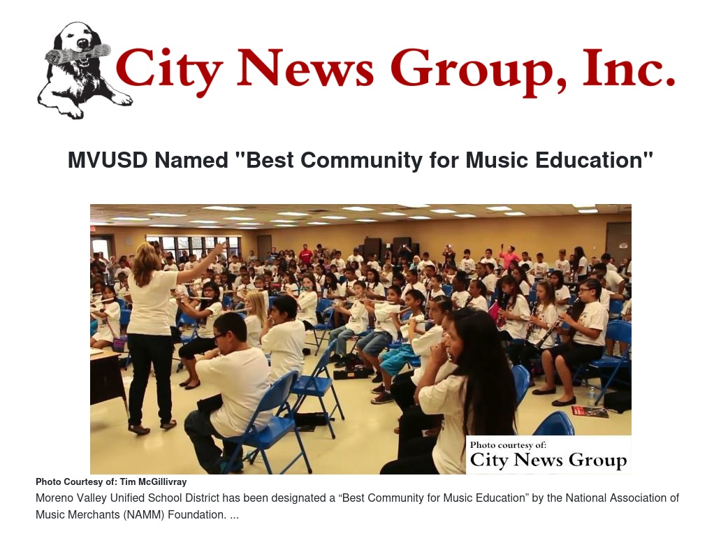 MORENO VALLEY>> Moreno Valley Unified School district has recently been recognized for its commitment to music.