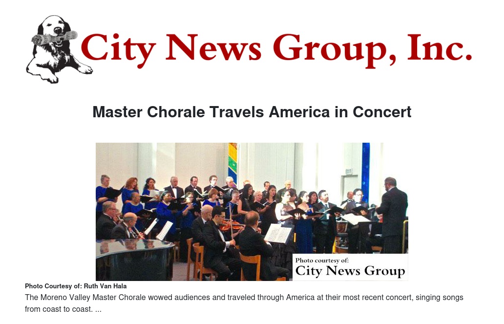 On May 31 the Moreno Valley Master Chorale presented a variety of popular “traveling tunes,” as they sang their way from coast to coast.