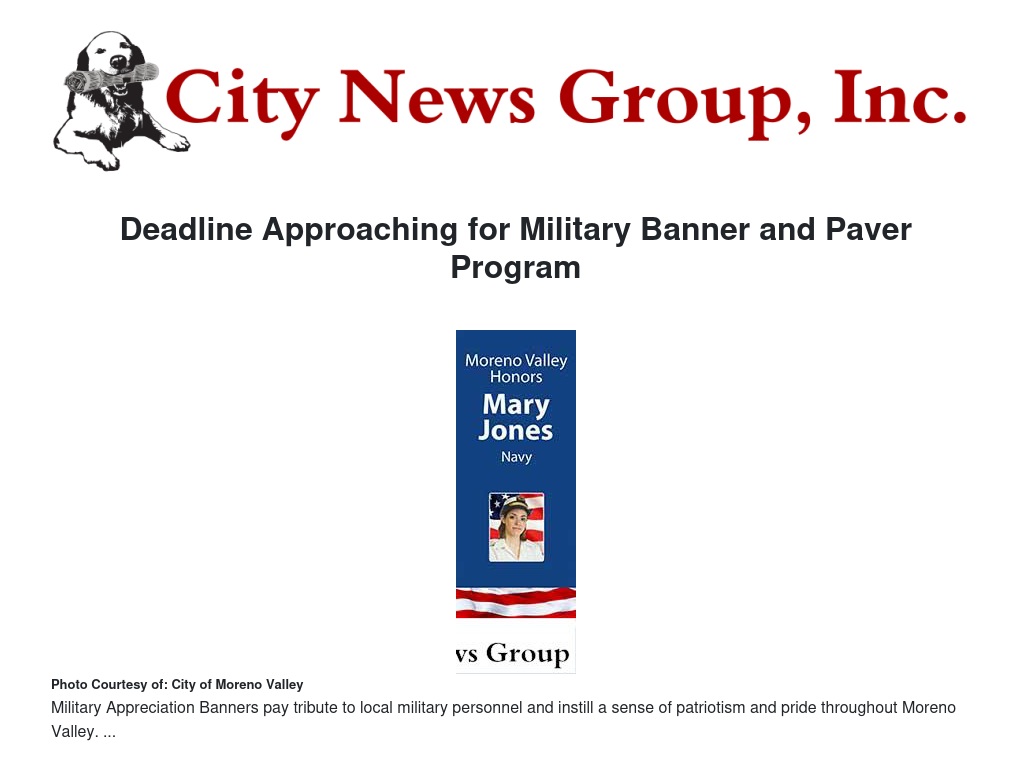 Qualifications for a banner include: Honorees must be active duty military service personnel who are residents of Moreno Valley, who have immediate family residing in Moreno Valley, or who have graduated from a Moreno Valley high school.