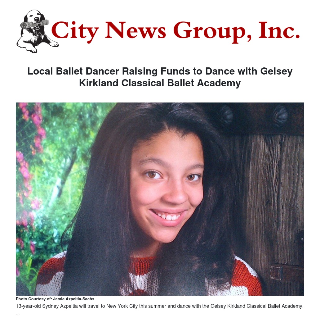 Sydney Azpeitia, a dancer with the nonprofit Inland Empire Contemporary Ballet, was one of 75 dancers from over 2,000 who auditioned worldwide chosen to attend the Gelsey Kirkland Classical Ballet Academy's summer program in New York City. The intensive program is fast-paced, with dancers working six days a week and taking supervised weekend excursions through The Big Apple to see several landmark sites for five weeks.