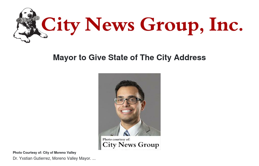 The address given by Mayor Yxstian Gutierrez is hosted by the City of Moreno Valley in partnership with the Moreno Valley Chamber of Commerce. The event, held at the Moreno Valley Conference and Recreation Center, will showcase the city's accomplishments and initiatives.