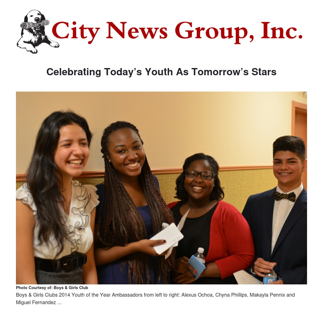 These four teens will be acknowledged and recognized as the Club’s 2014 Youth of the Year Ambassadors at the organizations upcoming Field of Dreams event where they plan to Celebrate Today’s Youth as Tomorrows Stars.