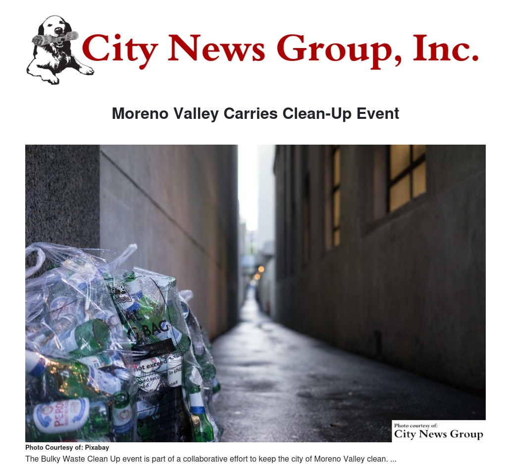 Organized by the City of Moreno Valley and Waste Management, the Bulky Waste Cleanup event is part of the Keep Moreno Valley Beautiful, or KMVB, initiative. The program is meant to help keep Moreno Valley cleaner by helping residents to properly dispose of waste.