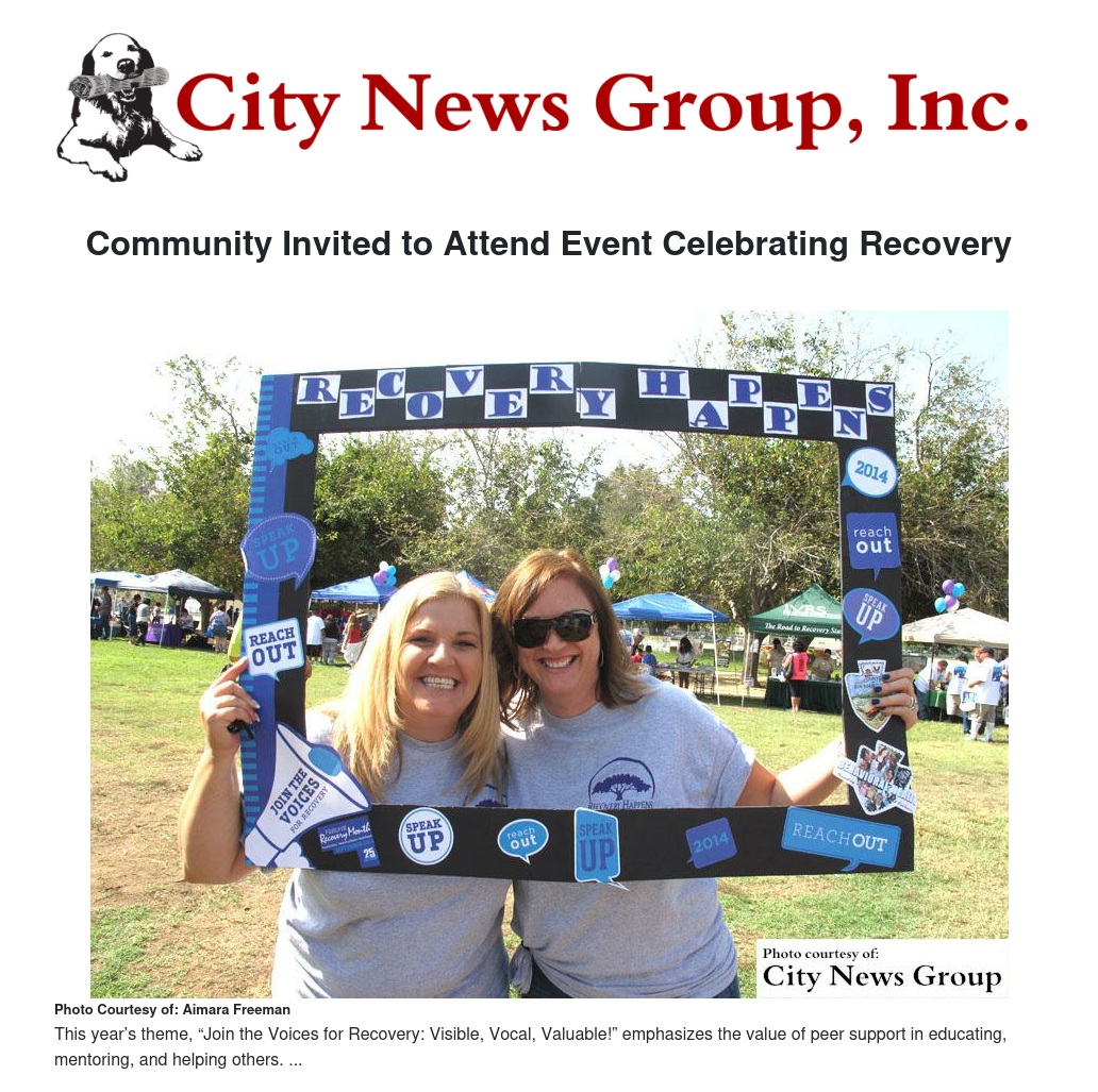 The Department of Behavioral Health (DBH) and its community partners invite the public to help celebrate National Alcohol and Drug Addiction Recovery Month by attending the 12th Annual Recovery Happens event on Saturday, Sept. 19 from 10 a.m. to 3 p.m. at Cucamonga-Guasti Regional Park, 800 N. Archibald Avenue in Ontario.
