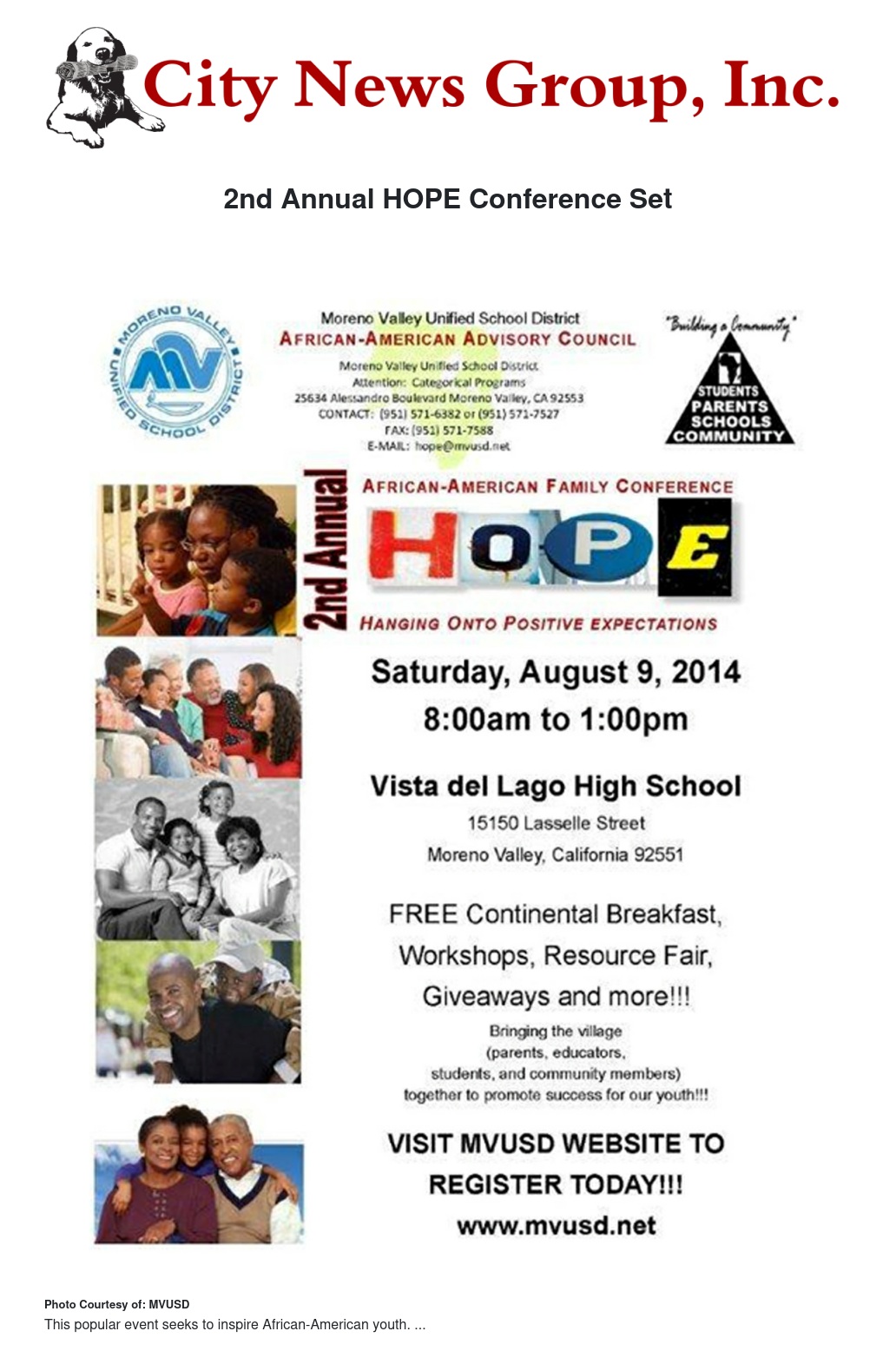 Organizers are expecting a record turnout for this year’s 2nd Annual HOPE Conference set for Saturday, Aug. 9, from 8 a.m. to 1 p.m. at Vista del Lago High School.