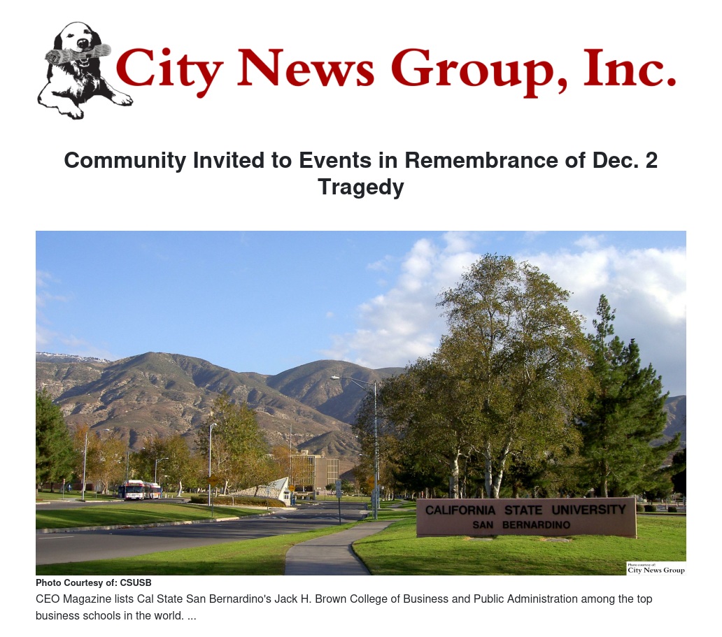 Community Invited to Events in Remembrance of Dec. 2 Tragedy