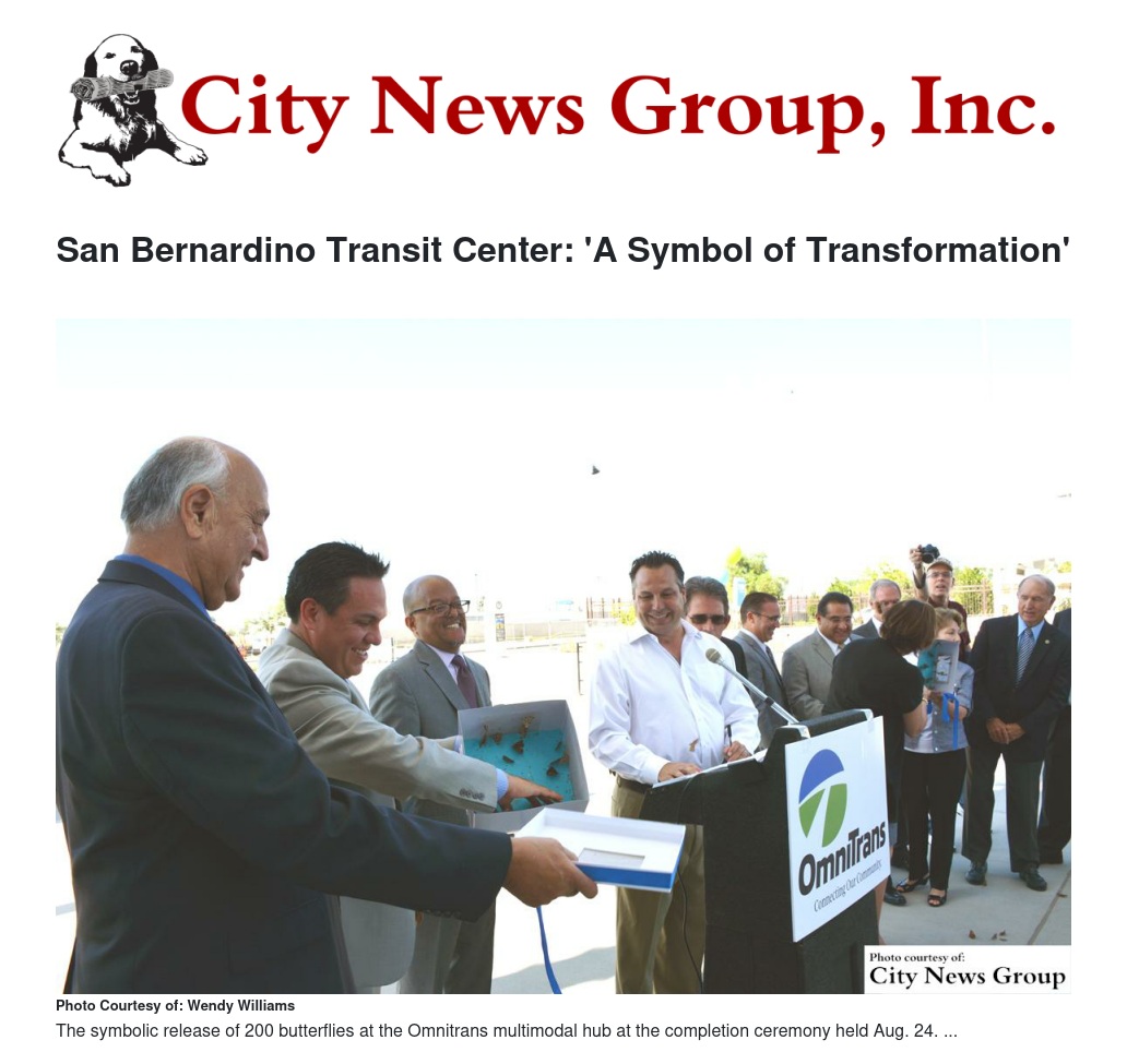 Touted as a tangible sign of transformation for both public transit and downtown, the San Bernardino Transit Center completion ceremony on Aug. 24 featured the symbolic release of 200 butterflies.