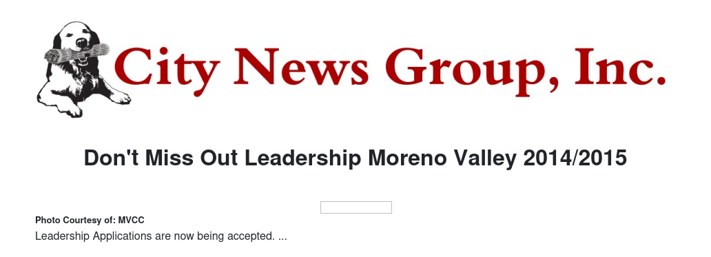 Applications are now being accepted for Leadership Moreno Valley 2014/2015.