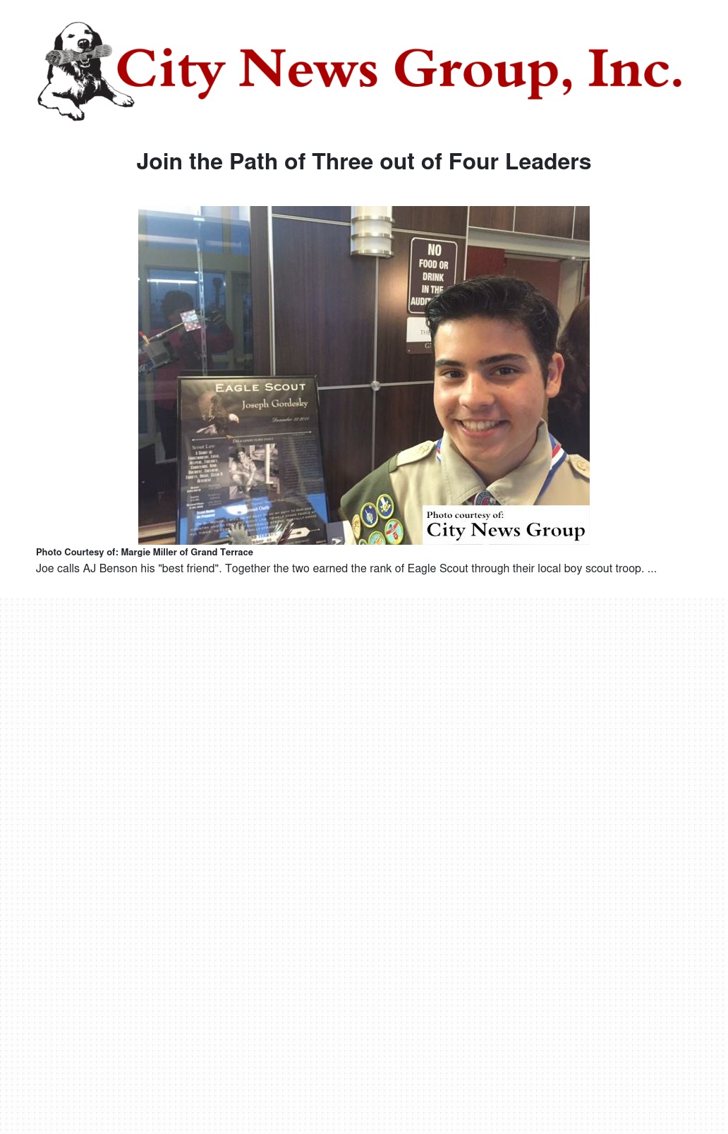 Gordesky, currently a junior at Grand Terrace High School, is the oldest and highest ranking youth member of his troop. Part of his responsibilities include mentoring younger members, speaking at lectures, supervising and working with patrols.