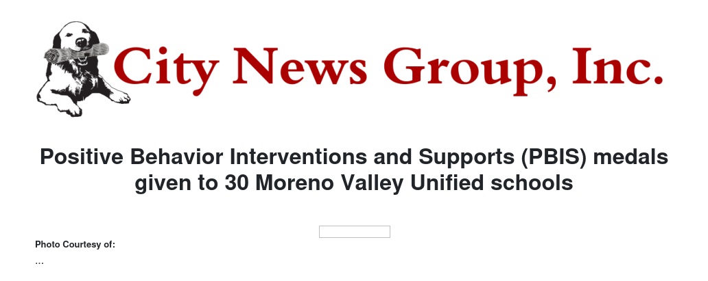 MORENO VALLEY>> The California PBIS Coalition has awarded PBIS recognition medals to 30 schools in the Moreno Valley Unified School District (MVUSD). PBIS supports a mindset of using positive relationships between staff and students to decrease incidents of discipline and produce alternatives to off-campus suspensions. “PBIS focuses on relationships and if students are connected to school, they’ll be actively present at school. In turn, that reduces disciplinary actions and improves behavior and academics,” said district PBIS Coordinator Debi Rozeski, Ph.D. Moreno Valley Unified School District is entering its fourth year using PBIS, and all schools will use the PBIS framework in the 2017-2018 school year. “We are very proud that so many of our schools were recognized with PBIS medals. It shows the dedication our teachers and administrators have in not just changing behavior, but the culture and social climate of each school,” said MVUSD Board of Education President Cleveland Johnson.