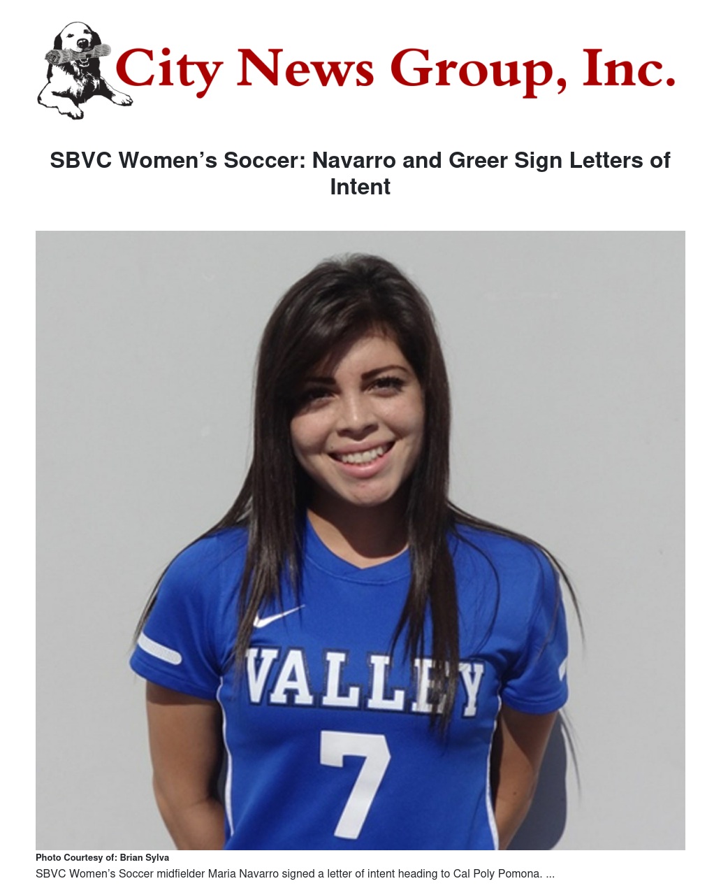 San Bernardino Valley College (SBVC) Women’s Soccer midfielder Maria Navarro (Ontario H.S.) and defender Basha Greer (Moreno Valley Valley View) have both signed letters of intent, with Navarro heading to Cal Poly Pomona and Greer heading to Humboldt State.