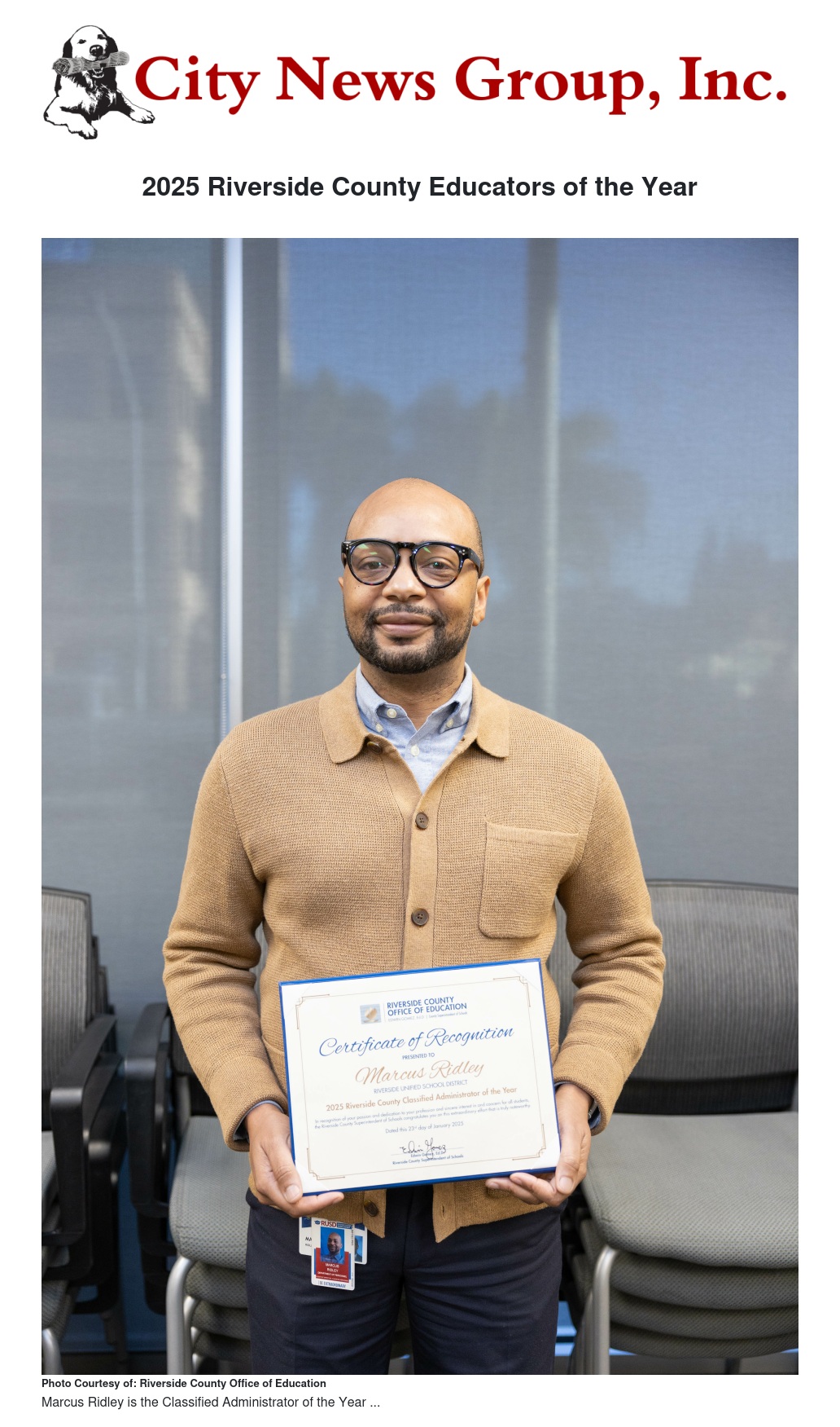 About Marcus Ridley – 2025 Riverside County Classified Administrator of the Year