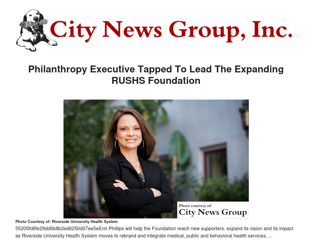 Erin Phillips, a prominent community advocate and a trusted leader in organizational and philanthropic development, has been named Executive Director of Riverside University Health System’s nonprofit Foundation.