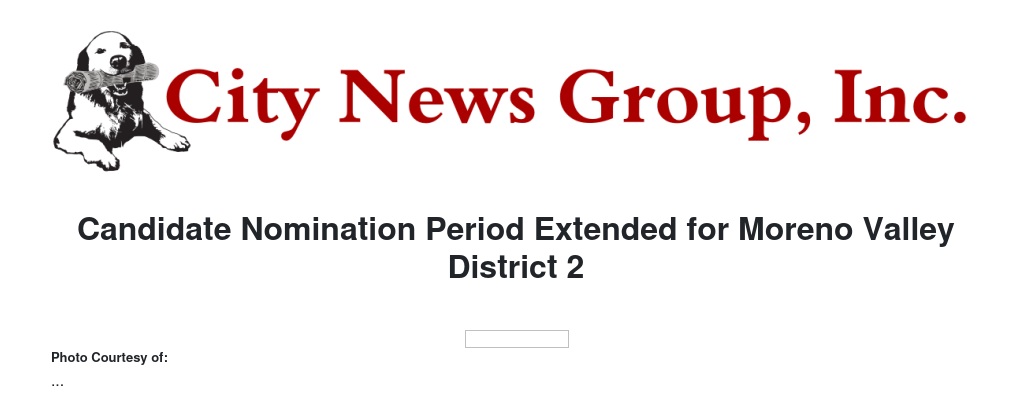 Candidate Nomination Period Extended for Moreno Valley District 2
