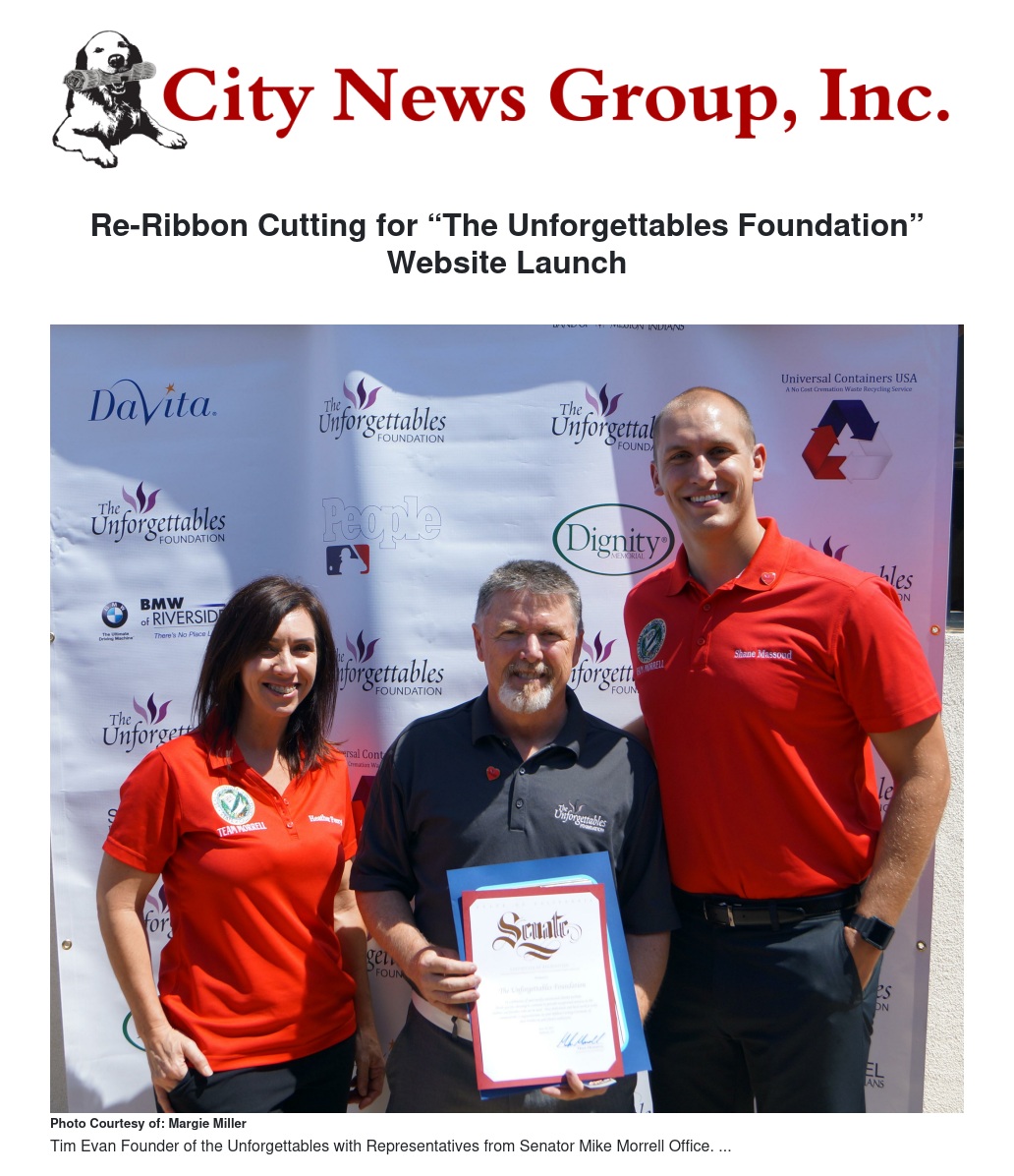 The hot summer heat was no match for The Unforgettables Foundation, a nonprofit organization founded by Timothy Evans since 1999, as they recently relaunched their Website built by Updog Media. The already thriving non-profit organization was supported by eight different Chambers of Commerce through a ribbon cutting ceremony on June 30 in Redlands. Many members had attended the event and were able to experience the true community effort that is given to this foundation.