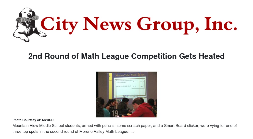 These Mountain View Middle School students, armed with pencils, some scratch paper, and a Smart Board clicker, were vying for one of three top spots in the second round of Moreno Valley Math League, a collaborative competition involving teams of sixth-, seventh- and eighth-graders at all six middle schools.