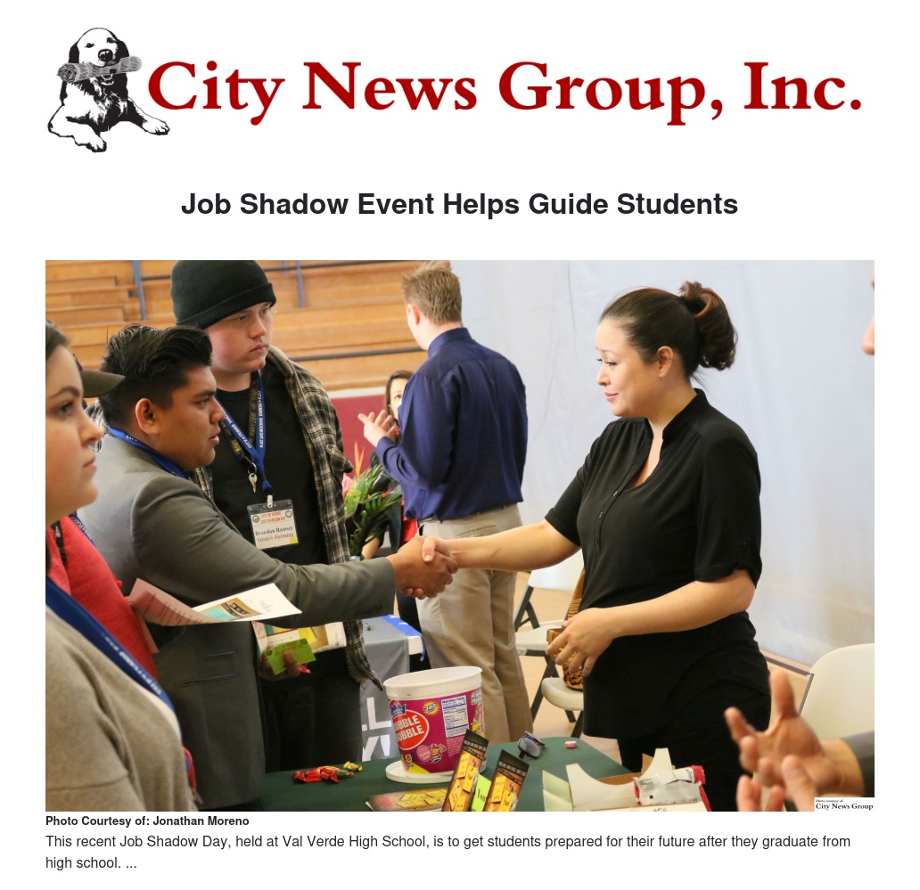 “It is important for students to job shadow for them to have the opportunity to connect with our local businesses and community resources and maybe find a career path they would like to pursue one day,” said James Macaraeg, Val Verde High School counselor.