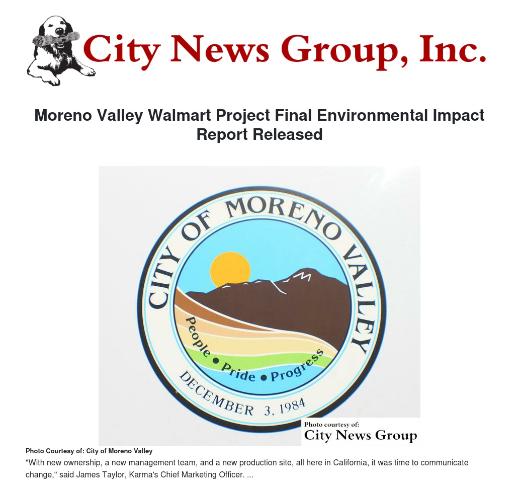 Moreno Valley Walmart Project Final Environmental Impact Report Released