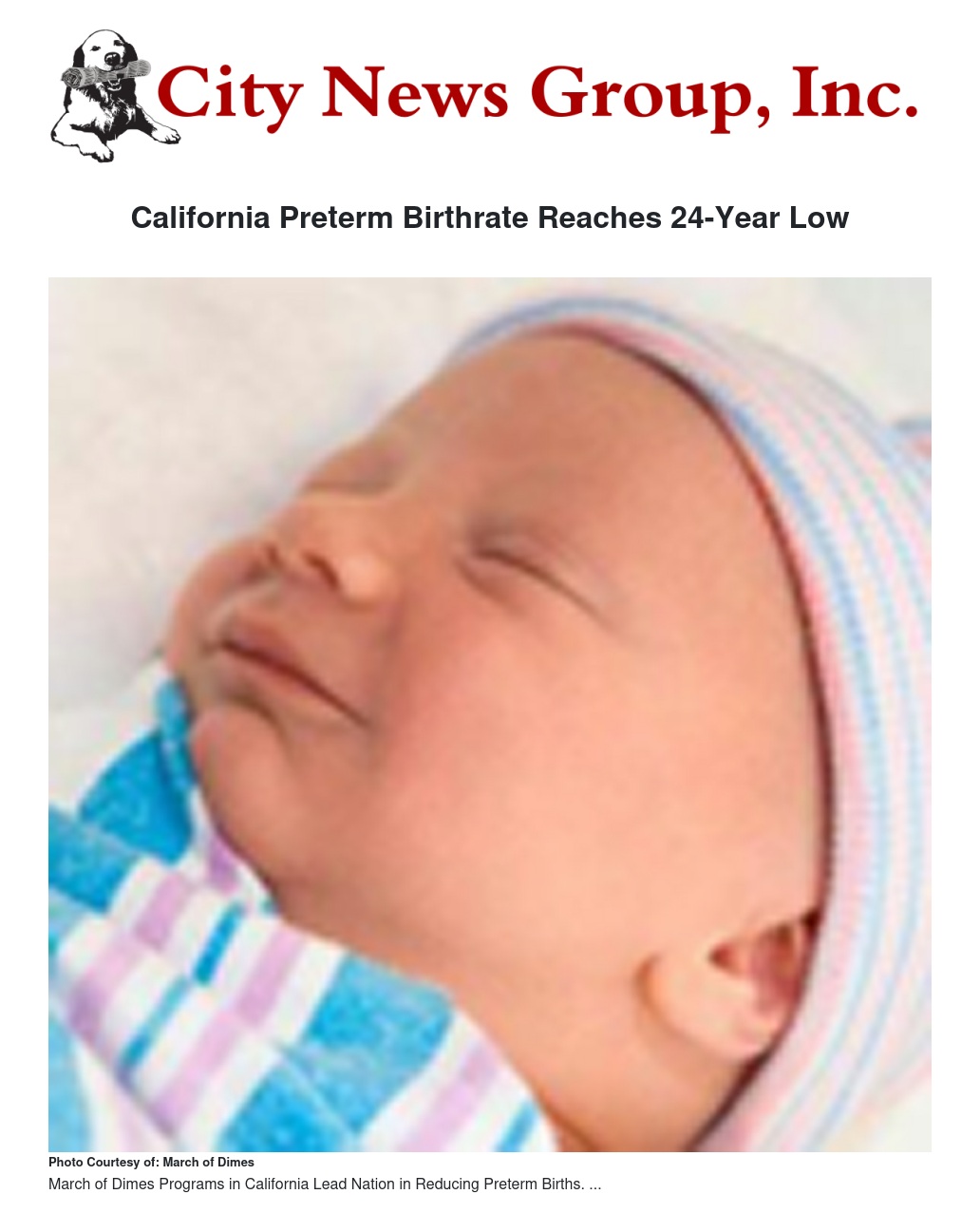 California earned an ‘A’ grade for the second year in a row and improved its rate on the report card. California is one of only five states to receive an “A” on the 2014 March of Dimes Premature Birth Report Card. And significantly, of the five states to receive an “A”, California is the most populous and diverse.