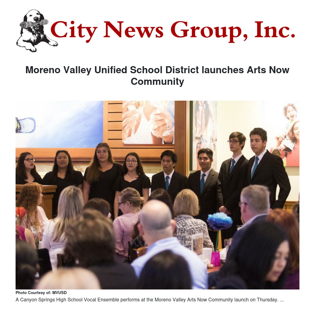 A crowd of arts advocates, local elected officials, district leaders and the California Alliance for Arts Education came together Thursday at the Sizzler Restaurant in Moreno Valley to launch the Moreno Valley Arts Now Community at MVUSD. Moreno Valley is the 51st district in the state to launch the community and is the first district in California to adopt a Declaration of Rights of All Students to Equity in Arts Learning.