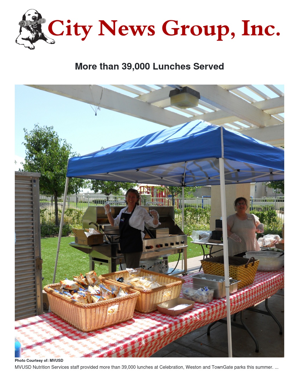 Moreno Valley Unified Nutrition Services provided 39,387 free lunches for children age 18 and under this summer.