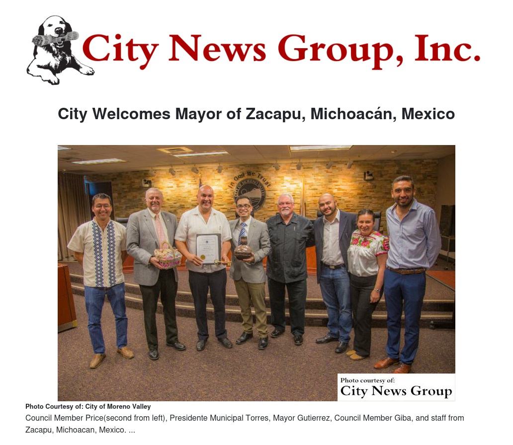 "International relationships are important to the quality of educational, cultural, and economic exchanges that benefit all parties," said Mayor Gutierrez. "We appreciate the opportunity to explore options for future interaction with the government and residents of Zacapu."