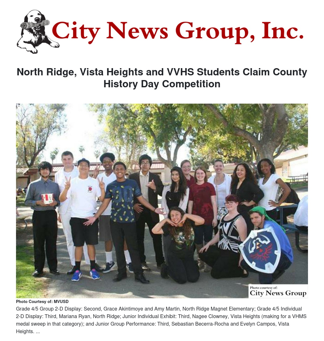 North Ridge, Vista Heights and VVHS Students Claim County History Day Competition