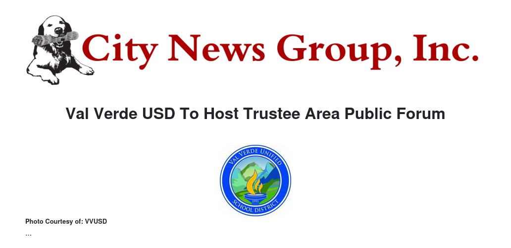 The Val Verde Unified School District ("District") Board of Education is in the process of transitioning from at-large elections to by-trustee area elections, and has been hosting a series of public forums throughout the month of August, only one remaining.