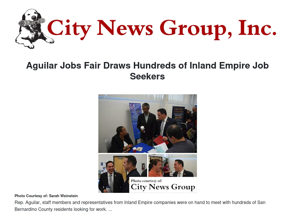 Rep. Aguilar has made job creation a top priority since taking office earlier this year.
