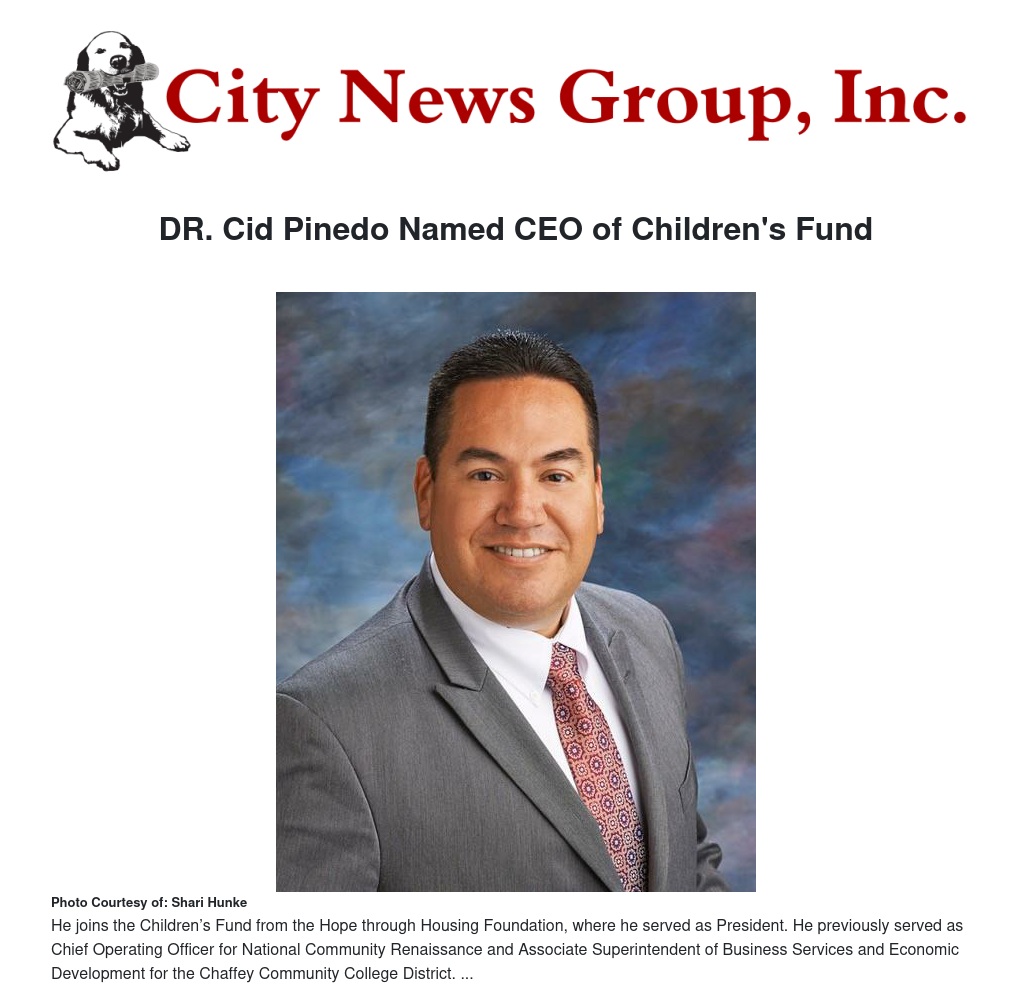 SAN BERNARDINO>> Ciriaco “Cid” Pinedo, Ed.D., a highly respected executive and educator, human services advocate, and fundraiser with deep roots in the Inland Empire, today was named Chief Executive Officer of the Children’s Fund.