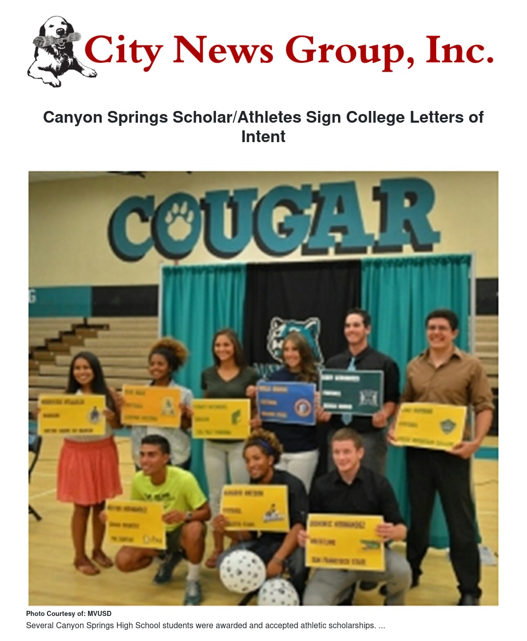 Canyon Springs Scholar/Athletes Sign College Letters of Intent