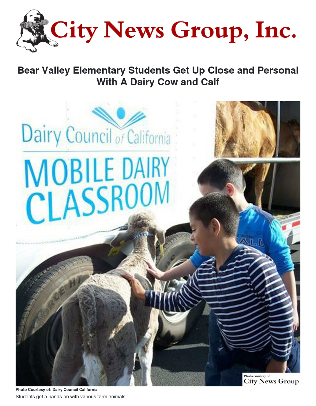 Students at Bear Valley Elementary learned firsthand about the role of agriculture in the food supply and how milk and dairy foods get from the farm to the table on Nov. 17, when a real cow and calf visited the school.