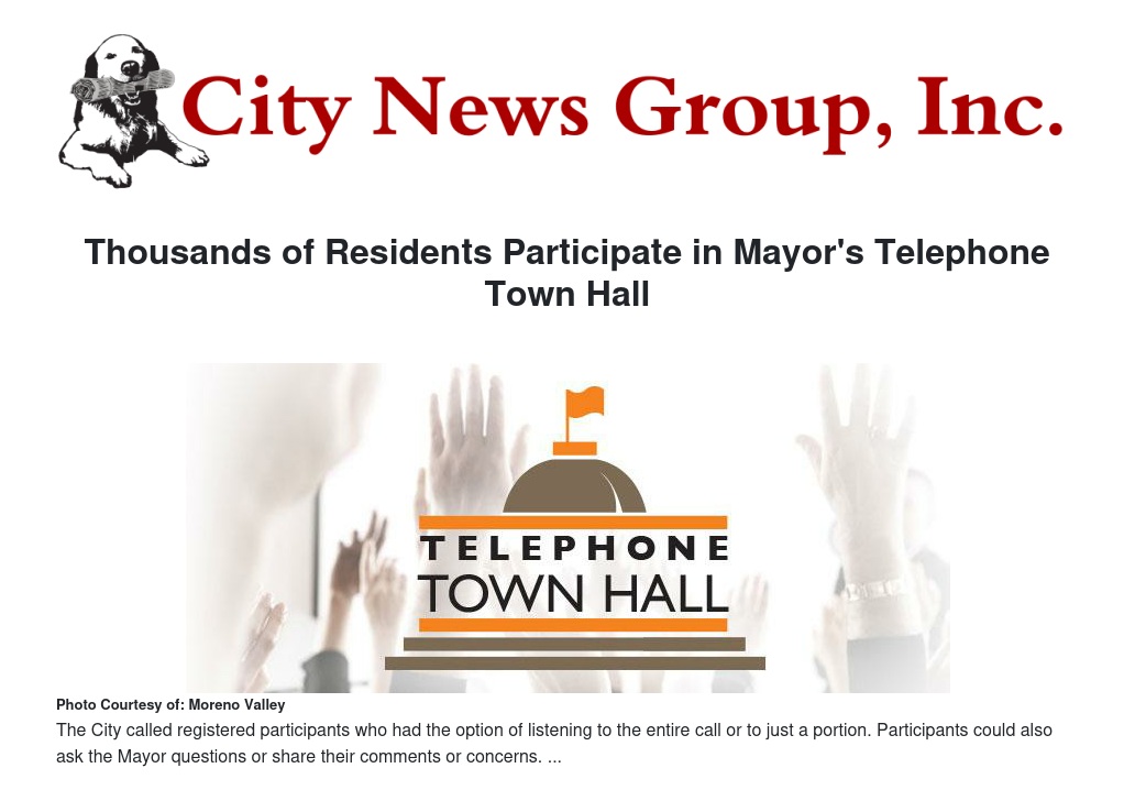 Thousands of Moreno Valley residents listened in to the City’s second Telephone Town Hall on Wednesday to hear updates on current City projects and plans for the future.