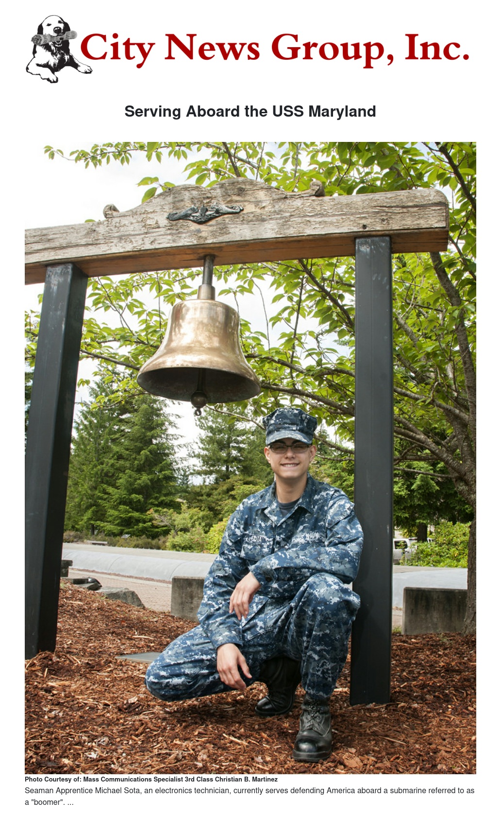 Seaman Apprentice Michael Sota, an electronics technician and Inland Empire native is serving aboard the USS Maryland (SSBN 738) Blue Crew in the U.S. Navy protecting and defending America on the world's oceans aboard one of the world's most advanced submarines.