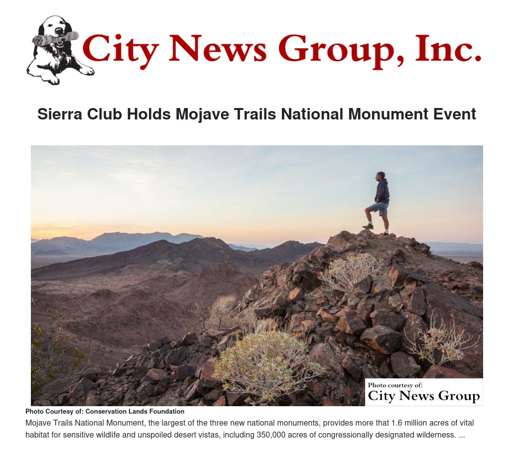 SAN BERNARDINO >> The San Gorgonio Chapter of the Sierra Club will have their monthly meeting Aug. 2 at the San Bernardino County Museum, located at 2024 Orange Tree Lane, Redlands at 7:30 p.m. to discuss the Mojave Trails National Monument with key officials.
