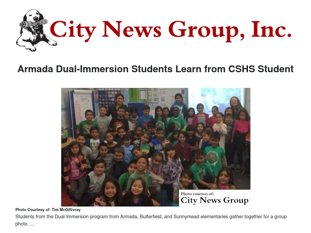Armada Dual-Immersion Students Learn from CSHS Student
