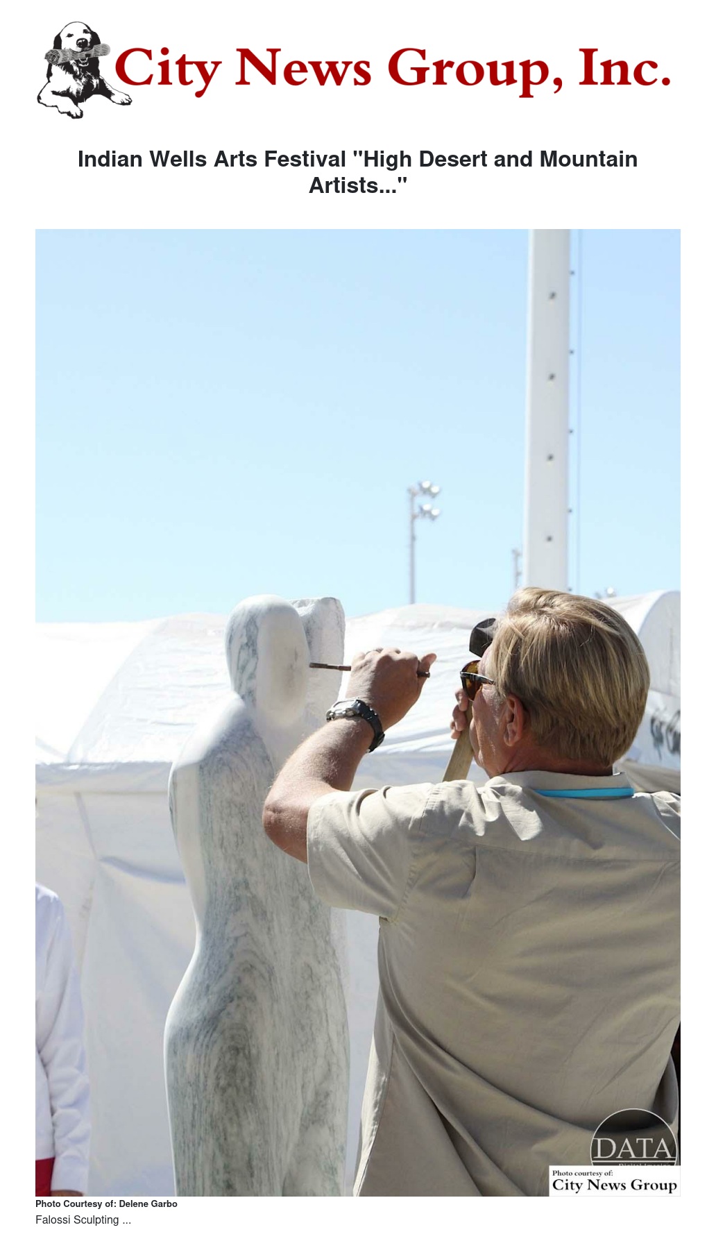 Highly acclaimed sculptor David Falossi of Yucca Valley says he is drawn to stone as his medium for its link to the earth and richness in variety. Falossi considers stone-carving to be the most difficult of all artistic mediums as it requires the sculptor to commit to a long and difficult process in the pursuit of chiseling an expression of art, making his on-site sculpture demonstrations over the three-day event, from a solid block of stone, incredibly impressive.