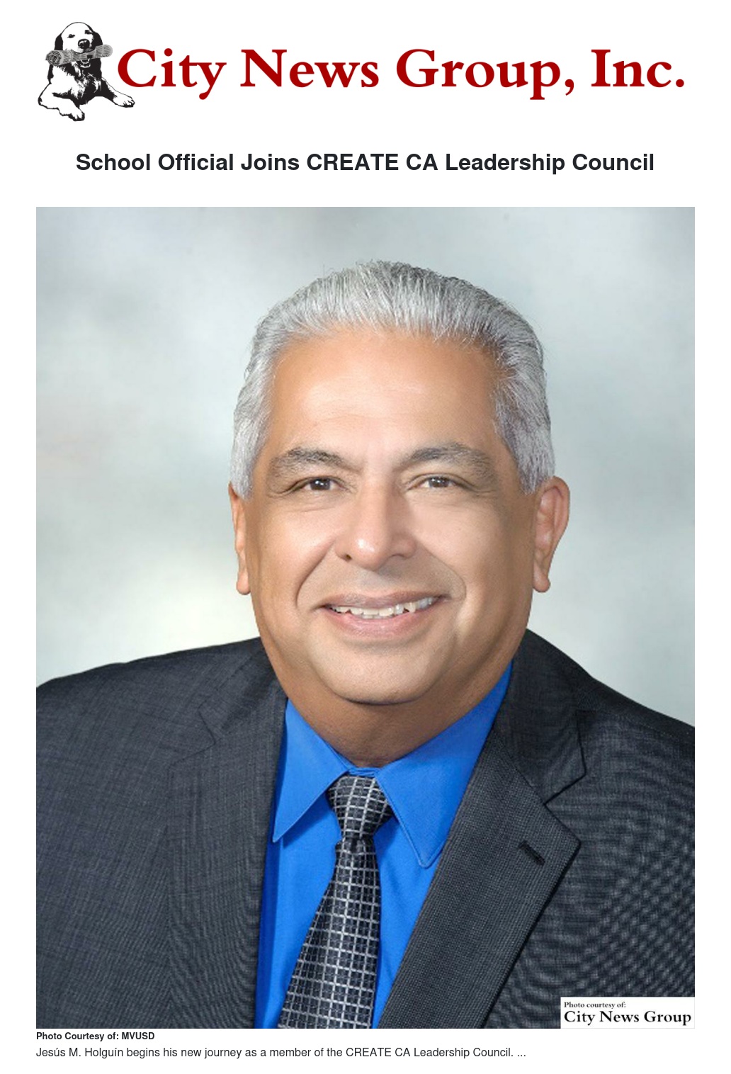 The statewide coalition of arts-education supporters that make up CREATE CA just got an important boost with the appointment of MVUSD School Board clerk Jesús M. Holguín to its Leadership Council.