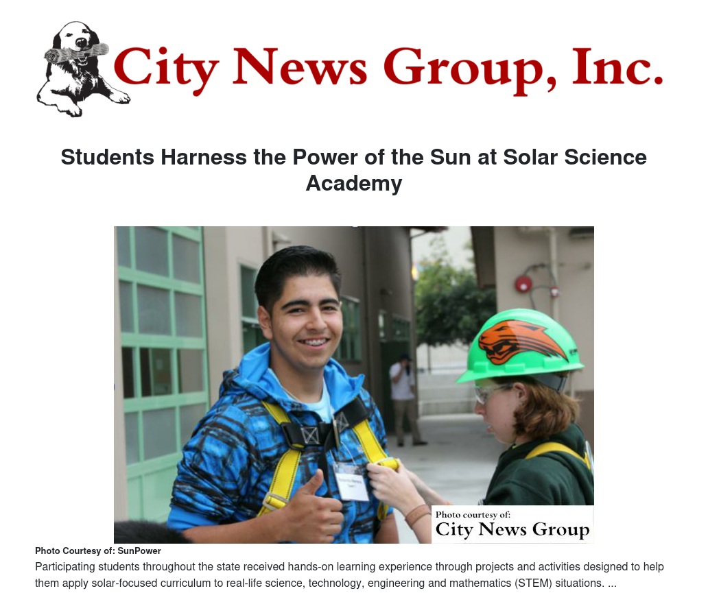 Approximately 300 students from 17 California school districts are participating in this summer's SunPower Solar Science Academy, a work-based learning program provided by SunPower, a global solar technology and energy services company. In total, more than 600 students and 86 teachers have participated since the summer academy was launched in 2012.