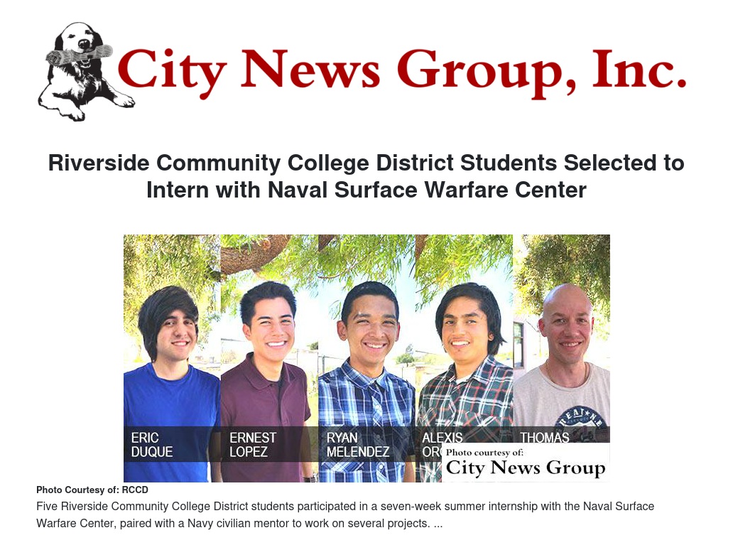 Riverside Community College District Students Selected to Intern with Naval Surface Warfare Center